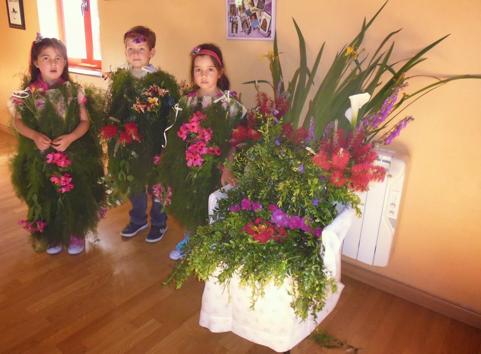 Nós fixemos una cadeira-maio e 3 nenos vestironse de maios